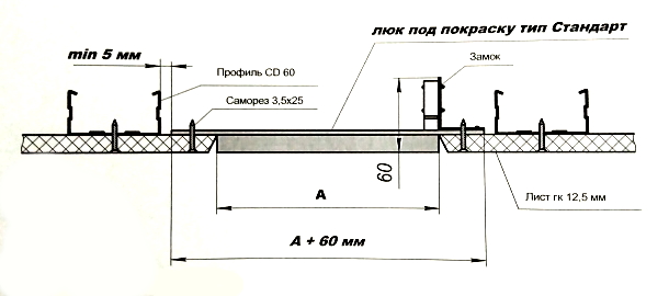 Лючки невидимки тип «СТАНДАРТ» в малых размерах (до 300мм) не требуют изготовления специальной усиливающей конструкции и могут крепиться непосредственно к гипсокартонной плите.